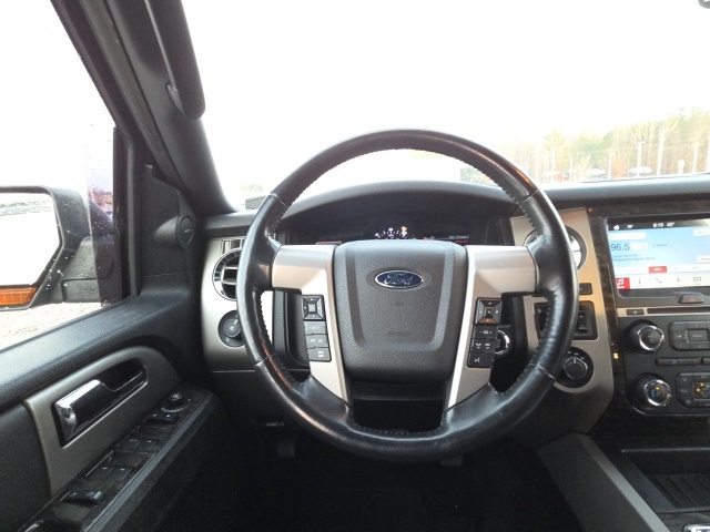 Vehicle Options: Equipment Group 301A (Power Deployable Running Boards, Power Moonroof, and Voice-Activated Navigation System w/HD Radio), GVWR: 7,500 lbs Payload Package, 12 Speakers, 20" Polished Aluminum Wheels, 3rd row seats: split-bench, 4-Wheel Disc Brakes, ABS brakes, Adjustable pedals, Air Conditioning, Alloy wheels, AM/FM radio: SiriusXM, Auto-dimming door mirrors, Auto-dimming Rear-View mirror, Automatic temperature control, Brake assist, Bumpers: body-color, CD player, Compass, Delay-off headlights, Driver door bin, Driver vanity mirror, Dual front impact airbags, Dual front side impact airbags, Electronic Stability Control, Exterior Parking Camera Rear, Four wheel independent suspension, Front anti-roll bar, Front Bucket Seats, Front Center Armrest, Front dual zone A/C, Front fog lights, Front reading lights, Fully automatic headlights, Garage door transmitter, Heated & Cooled Perforated Leather Fr Bucket Seats, Heated front seats, Heated power door mirrors, Heated rear seats, Illuminated entry, Leather Shift Knob, Leather steering wheel, License Plate Bracket, Low tire pressure warning, Memory seat, Occupant sensing airbag, Outside temperature display, Overhead airbag, Overhead console, Panic alarm, Passenger door bin, Passenger vanity mirror, Pedal memory, Power door mirrors, Power driver seat, Power Liftgate, Power passenger seat, Power steering, Power windows, Radio data system, Radio: Premium Sony Sound System w/Single-Disc/MP3, Rain sensing wipers, Rear air conditioning, Rear anti-roll bar, Rear audio controls, Rear reading lights, Rear window defroster, Rear window wiper, Remote keyless entry, Roof rack, Security system, Speed control, Speed-sensing steering, Speed-Sensitive Wipers, Split folding rear seat, Steering wheel mounted audio controls, SYNC Communications & Entertainment System, Tachometer, Telescoping steering wheel, Tilt steering wheel, Traction control, Trip computer, Turn signal indicator mirrors, Variably intermittent wipers, Ventilated front seats, and Voltmeter.