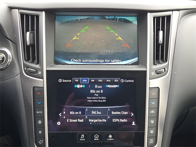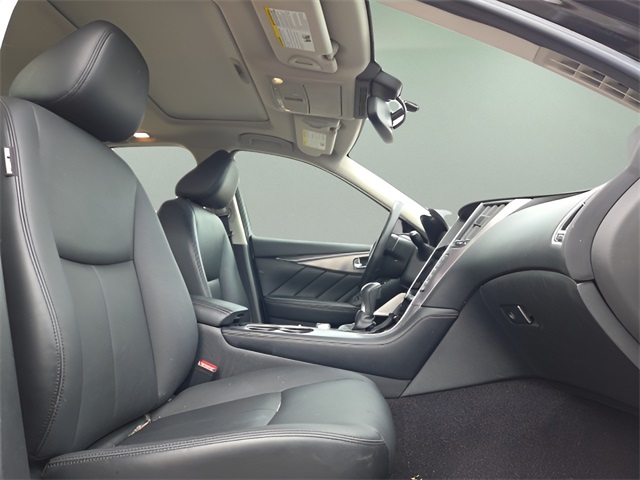 Vehicle Options: 2.0T Premium Plus Package (60/40 Split-Folding Rear Seats, Auto-Dimming Outside Mirrors w/Reverse Link, Driver & Front Passenger Heated Seats, Heated Steering Wheel, INFINITI InTouch Navigation System, Memory System For Driver's Seat, and Power Tilt & Telescope Steering Wheel), All Weather Package (L96) (All-Season Floor Mats and Trunk Protector), Cargo Package (L97) (Cargo Net, Carpeted Trunk Mat, and First Aid Kit), 16 Speakers, 17" x 7.5" Aluminum Alloy Wheels, 4-Wheel Disc Brakes, ABS brakes, Air Conditioning, Alloy wheels, AM/FM radio: SiriusXM, Anti-whiplash front head restraints, Auto-dimming Rear-View mirror, Automatic temperature control, BOSE Centerpoint Simulated Surround, Brake assist, Bumpers: body-color, CD player, Compass, Delay-off headlights, Driver door bin, Driver vanity mirror, Dual front impact airbags, Dual front side impact airbags, Electronic Stability Control, Four wheel independent suspension, Front anti-roll bar, Front Bucket Seats, Front Center Armrest, Front dual zone A/C, Front fog lights, Front reading lights, Fully automatic headlights, Garage door transmitter: HomeLink, Heated power door mirrors, Illuminated entry, Illuminated Kick Plates, INFINITI Studio on Wheels by Bose, Leather Shift Knob, Leather steering wheel, Low tire pressure warning, Occupant sensing airbag, Outside temperature display, Overhead airbag, Overhead console, Panic alarm, Passenger door bin, Passenger vanity mirror, Power door mirrors, Power driver seat, Power moonroof, Power passenger seat, Power steering, Power windows, Premium Leatherette Seating Surfaces, Radio data system, Radio: AM/FM/CD w/MP3 Playback Capability, Rain sensing wipers, Rear anti-roll bar, Rear reading lights, Rear seat center armrest, Rear window defroster, Remote keyless entry, Security system, Speed control, Speed-sensing steering, Speed-Sensitive Wipers, Splash Guards, Steering wheel mounted audio controls, Tachometer, Telescoping steering wheel, Tilt steering wheel, Traction control, Trip computer, Turn signal indicator mirrors, and Variably intermittent wipers.