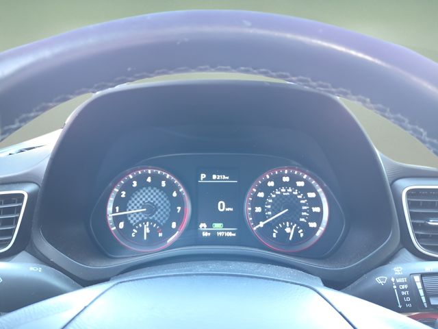 Vehicle Options: 18" x 7.5J Alloy Wheels, 4-Wheel Disc Brakes, 8 Speakers, ABS brakes, Air Conditioning, Alloy wheels, AM/FM radio: SiriusXM, Apple CarPlay & Android Auto, Automatic temperature control, Brake assist, Bumpers: body-color, Carpeted Floor Mats, Combination Leather/Cloth Insert Seat Trim, Delay-off headlights, Driver door bin, Driver vanity mirror, Dual front impact airbags, Dual front side impact airbags, Electronic Stability Control, Emergency communication system: Blue Link, Exterior Parking Camera Rear, Four wheel independent suspension, Front anti-roll bar, Front Bucket Seats, Front Center Armrest, Front reading lights, Fully automatic headlights, Heated Front Bucket Seats, Heated front seats, Heated power door mirrors, Illuminated entry, Leather Shift Knob, Leather steering wheel, Low tire pressure warning, Occupant sensing airbag, Outside temperature display, Overhead airbag, Overhead console, Panic alarm, Passenger door bin, Passenger vanity mirror, Power door mirrors, Power moonroof, Power steering, Power windows, Premium audio system: Infinity, Radio: AM/FM 8" Display Audio, Rear anti-roll bar, Rear window defroster, Rear window wiper, Remote keyless entry, Security system, Speed control, Speed-sensing steering, Split folding rear seat, Spoiler, Steering wheel mounted audio controls, Tachometer, Telescoping steering wheel, Tilt steering wheel, Traction control, Trip computer, and Variably intermittent wipers.