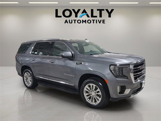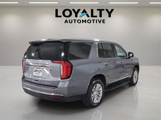 This 2021 GMC Yukon SLT delivers full-size capability with premium comfort and modern design. Finished in Satin Steel Metallic with a Jet Black interior, this Yukon offers a refined yet rugged presence thats perfect for families, road trips, or daily driving.