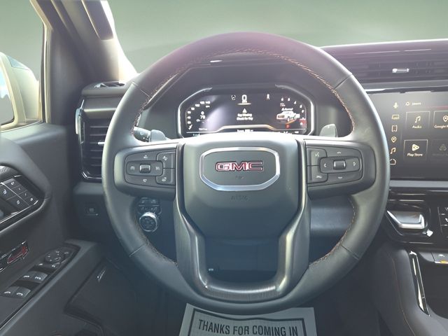 Vehicle Options: AT4 Preferred Package (Power Sliding Rear Window w/Rear Defogger and Universal Home Remote), AT4 Premium Package (Off-Road High Clearance Step (LPO)), Preferred Equipment Group 4SB (120-Volt Bed Mounted Power Outlet, 120-Volt Interior Power Outlet, 2 Charge/Data USB Ports Inside Center Console, 2 Type-C Charge-Only Rear USB Ports, 2 USB Ports, 220 Amp Alternator, Auto-Locking Rear Differential, Black Chrome Grille Insert Bars, Color-Keyed Carpeting Floor Covering, Deep-Tinted Glass, Electric Rear-Window Defogger, Floor-Mounted Center Console, Front Prem Floor Liners w/Removable Carpet Insert, Front Rain-Sensing Wipers, HD Surround Vision, Heated 2nd Row Outboard Seats, Heated Driver & Front Outboard Passenger Seating, Heavy-Duty Air Filter, Hill Descent Control, Hitch View, In-Vehicle Trailering System App, Integrated Trailer Brake Controller, Keyless Open & Start, LED Cargo Area Lighting, OnStar Services Capable, Perimeter Lighting, Power Door Locks, Power Front Passenger Windows w/Express Up/Down, Power Front Windows w/Driver Express Up/Down, Power Rake & Telescoping Steering Column, Power Rear Windows w/Express Down, Premium Bose 7-Speaker Sound System, Push Button Start, Rear Cross Traffic Braking, Rear Pedestrian Detection, Rear Prem Floor Liners w/Removable Carpet Insert, Rear Wheelhouse Liners, Red Recovery Hooks, Remote Vehicle Starter System, SiriusXM w/360L Trial Subscription, Spray-On Pickup Bedliner w/GMC Logo, Steering Wheel Audio Controls, Theft Deterrent System (Unauthorized Entry), Trailer Camera Provisions, Trailer Side Blind Zone Alert, Ultrasonic Front & Rear Park Assist, Ventilated Driver & Front Passenger Seats, Wi-Fi Hotspot Capable, and Wireless Charging), Technology Package (Bed View Camera, Multicolor 15" Diagonal Head-Up Display, and Rear Camera Mirror), Trailering Package (Hitch Guidance), 10-Way Power Driver Seat Adjuster w/Lumbar, 10-Way Power Passenger Seat Adjuster w/Lumbar, 3.23 Rear Axle Ratio, 4-Wheel Disc Brakes, 7 Speakers, ABS brakes, Air Conditioning, Alloy wheels, AM/FM radio: SiriusXM with 360L, Apple CarPlay/Android Auto, Auto High-beam Headlights, Auto-dimming door mirrors, Auto-dimming Rear-View mirror, Automatic Emergency Braking, Automatic temperature control, Block heater, Brake assist, Buckle to Drive, Bumpers: body-color, Compass, Delay-off headlights, Driver door bin, Driver Memory, Driver vanity mirror, Dual front impact airbags, Dual front side impact airbags, Electronic Stability Control, Emergency communication system: OnStar, Engine Block Heater, Following Distance Indicator, Forward Collision Alert, Front anti-roll bar, Front Bucket Seats, Front Center Armrest, Front dual zone A/C, Front fog lights, Front License Plate Kit, Front Pedestrian Braking, Front reading lights, Front wheel independent suspension, Fully automatic headlights, Heated front seats, Heated power door mirrors, Heated rear seats, Heated steering wheel, Illuminated entry, IntelliBeam Automatic High Beam On/Off, Lane Keep Assist w/Lane Departure Warning, Low tire pressure warning, Memory seat, Navigation System, Occupant sensing airbag, Off-Road Suspension, Outside temperature display, Overhead airbag, Overhead console, Panic alarm, Passenger door bin, Passenger vanity mirror, Perforated Front Leather Seat Trim, Power door mirrors, Power driver seat, Power passenger seat, Power steering, Power Sunroof, Power windows, Radio data system, Radio: Premium GMC Infotainment Audio System, Rain sensing wipers, Rear reading lights, Rear seat center armrest, Rear step bumper, Rear window defroster, Remote keyless entry, Safety Alert Seat, Security system, Speed control, Speed-sensing steering, Split folding rear seat, Steering wheel mounted audio controls, Tachometer, Telescoping steering wheel, Tilt steering wheel, Traction control, Trip computer, Variably intermittent wipers, Ventilated front seats, V
