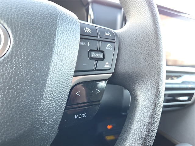 Vehicle Options: ABS brakes, Active Cruise Control, Alloy wheels, Electronic Stability Control, Front dual zone A/C, Heated power door mirrors, Illuminated entry, Low tire pressure warning, Remote keyless entry, Traction control, 4-Wheel Disc Brakes, 6 Speakers, Air Conditioning, AM/FM radio: SiriusXM, Apple CarPlay/Android Auto, Auto High-beam Headlights, Automatic temperature control, Brake assist, Bumpers: body-color, Delay-off headlights, Driver door bin, Driver vanity mirror, Dual front impact airbags, Dual front side impact airbags, Emergency communication system: Safety Connect (up to 10-year trial subscription), Exterior Parking Camera Rear, Fabric Seat Trim, Four wheel independent suspension, Front anti-roll bar, Front Bucket Seats, Front Center Armrest, Front reading lights, Fully automatic headlights, Knee airbag, Occupant sensing airbag, Outside temperature display, Overhead airbag, Overhead console, Panic alarm, Passenger door bin, Passenger vanity mirror, Power door mirrors, Power steering, Power windows, Radio data system, Radio: Toyota Audio Multimedia w/8" Touchscreen, Rear anti-roll bar, Rear seat center armrest, Rear side impact airbag, Rear window defroster, Security system, Speed control, Speed-sensing steering, Split folding rear seat, Steering wheel mounted audio controls, Telescoping steering wheel, Tilt steering wheel, Trip computer, Turn signal indicator mirrors, Variably intermittent wipers, and Wheels: 16" Silver-Finished Alloy.